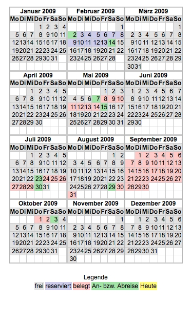 Ein Beispiel wie ein Belegungskalender aussehen könnte, sehen Sie hier. Weitere Kalender im Einsatz können Sie weiter unten finden.